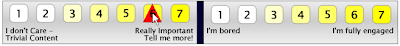 - Left side - Response to content. A rating scale from 1 to 7, with 1 being "I don't care -- trivial content" to 7 being "Really important -- Tell me more!"